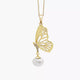The moonlit necklace is a drop pearl necklace with a crescent diamond studded moon, handcrafted with precision. It exudes celestial charm.