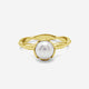 Designed on the idea of balance, this piece features two lustrous round pearls gracefully placed on either side of a central, wavy band adorned with shimmering diamonds.