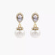 The earrings feature a trio of marquise diamonds that resemble the petals of a flower leading to a lustrous pearl drop that sways with movement.